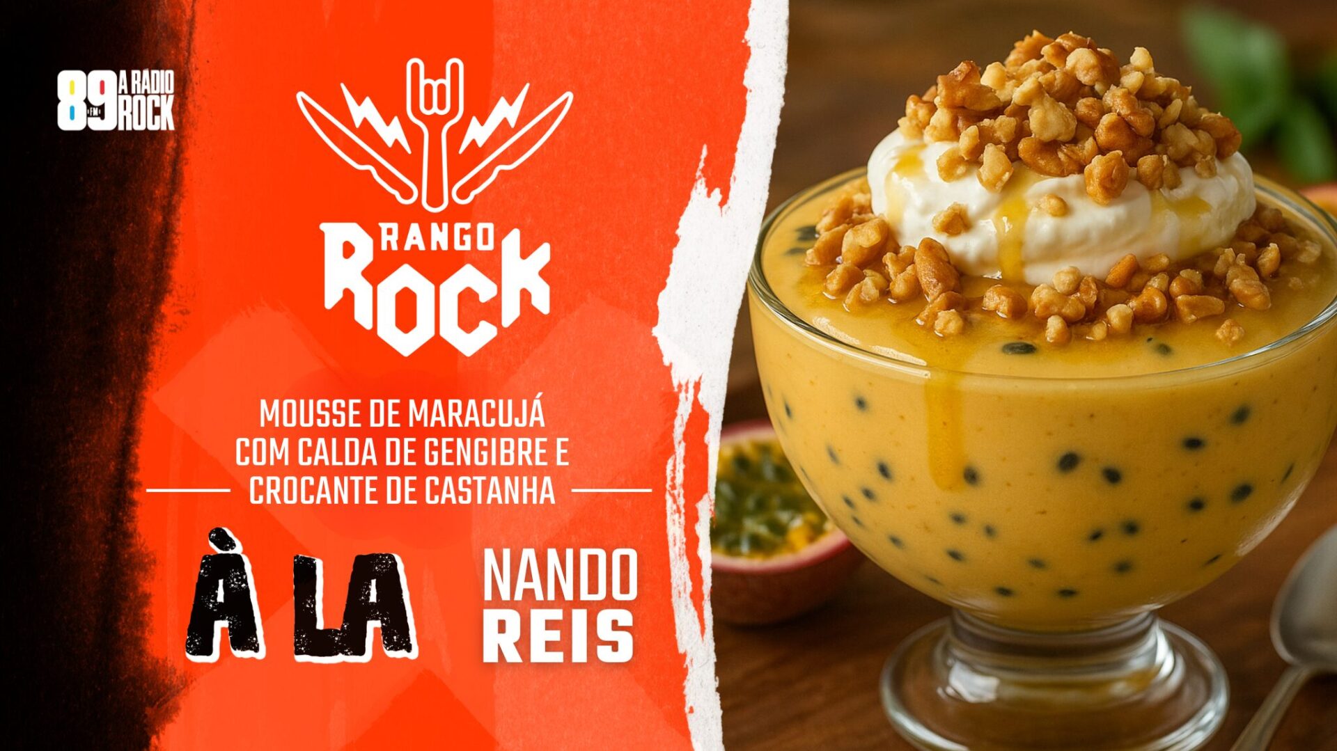 Mousse de Maracujá com Calda de Gengibre e Crocante de Castanha à la Nando Reis