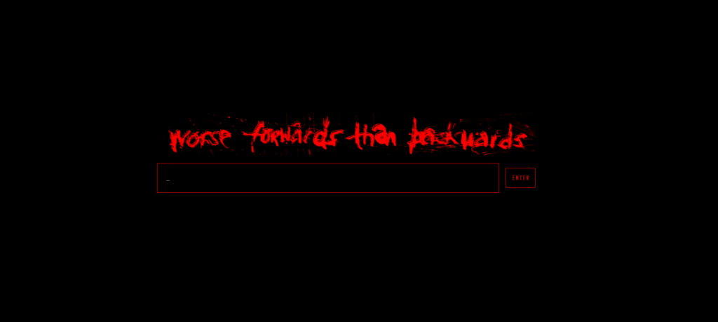 A página inicial traz a mensagem “Pior indo para frente do que para trás” e apresenta uma caixa de texto com um botão “enter” ao lado.